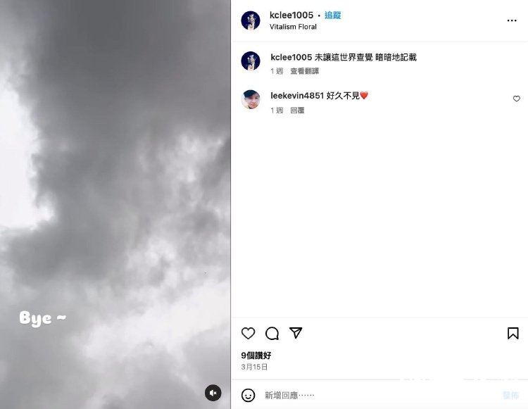 另据港媒报道,两周前,李国祥突然在已停用了七年的社交平台账号发文,并上传了一张乌云密布的照片,附有“Bye~”的文字,并以其代表作《余情未了》中的歌词“未让这世界查觉 暗暗地记载”留言,疑似暗示与世界道别。