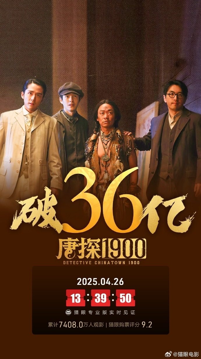 此前,“唐探”系列前三部累计票房达到87.43亿,其中《唐人街探案3》以45.23亿位列中国影史票房榜第7位。如今,这部《唐探1900》能否再创票房佳绩,值得期待。