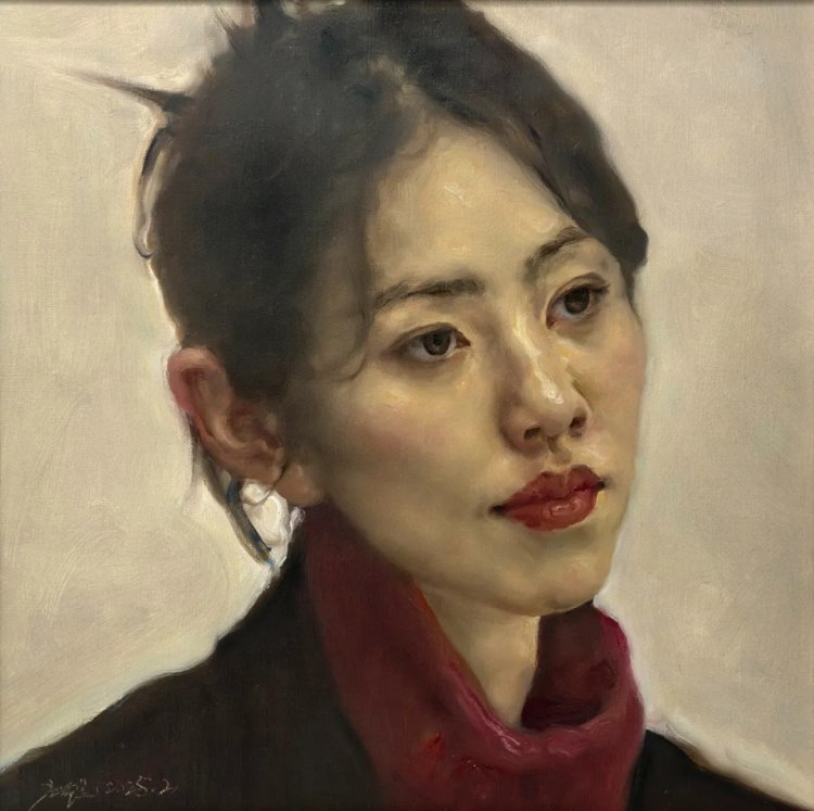 凝思的女孩 庞茂琨 油画 40×40cm 2025年