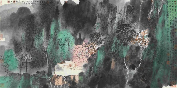 陋室铭诗意图 卢禹舜 中国画 69×138cm 2024年