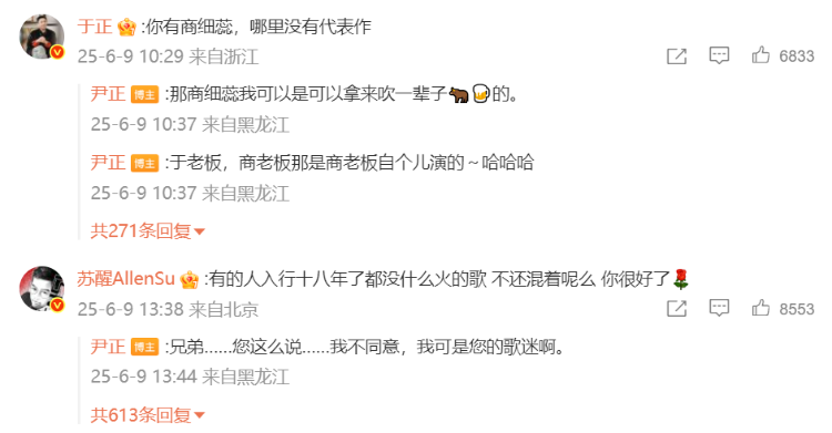 尹正发长文后,于正、苏醒、万合天宜导演刘循子墨、李茂等圈内人纷纷留言力挺“你很好了。”“你在我心里就是一个有追求有质感有演技有生活又仗义的好演员!”