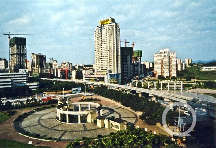 《洪崖洞换新颜》对比照。左图:1999年拍摄的洪崖洞片区;右图:2018年10月拍摄的洪崖洞片区。