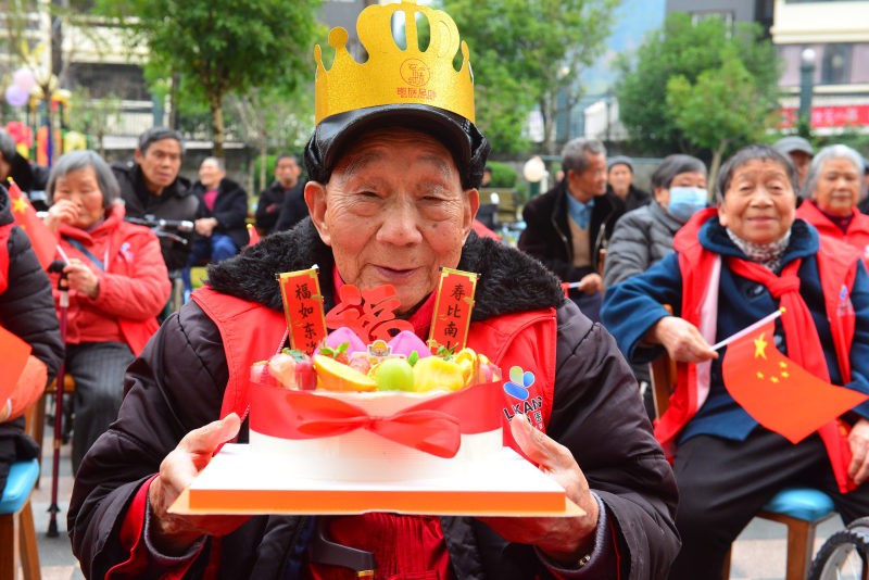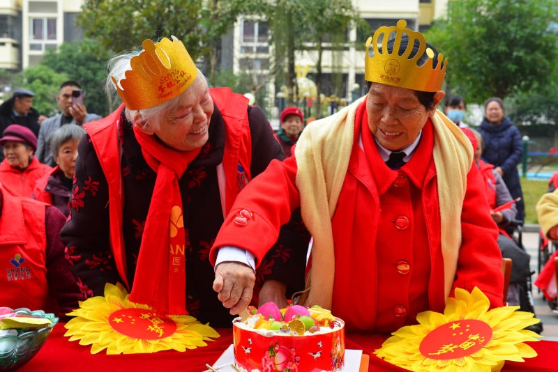 12月17日,重庆市武隆区凤山街道养老服务中心内一片欢声笑语。近20位高龄老人齐聚一堂,在志愿者精心准备的歌舞表演和祝福中,共同庆祝集体生日。