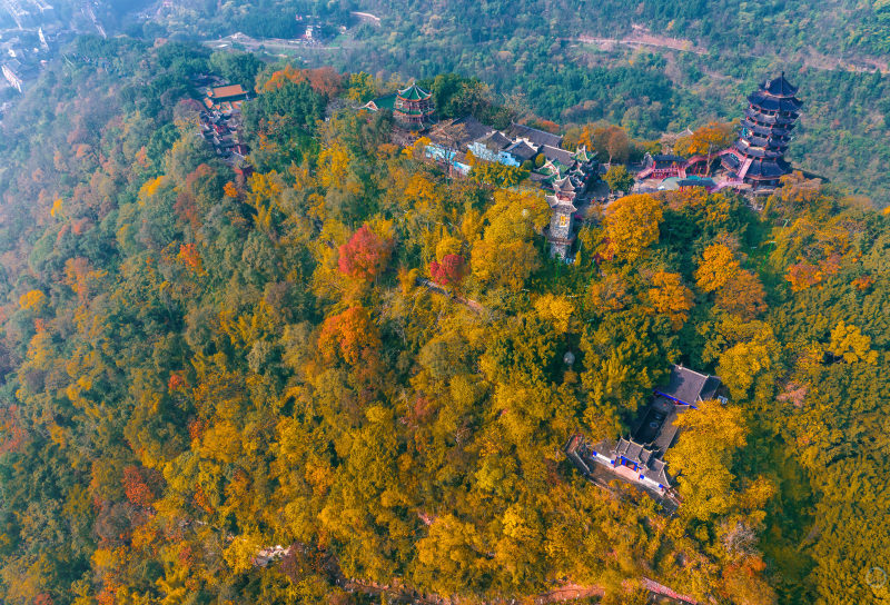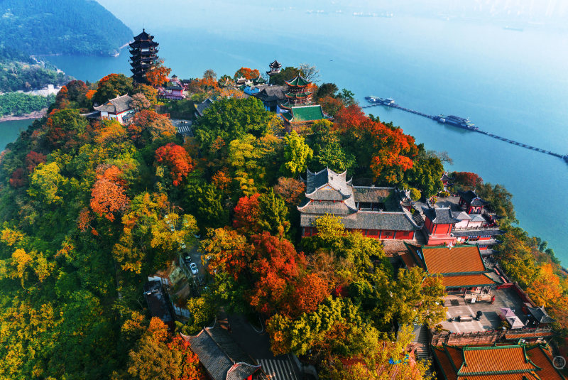 12月19日,长江重庆丰都段水色澄碧,名山景区内霜风拂过,漫山彩林尽披锦绣。红叶炽如焰,黄栌灿若金,深浅斑斓的彩叶在冬日阳光下翻涌起伏,宛如一片流淌的暖色波浪。