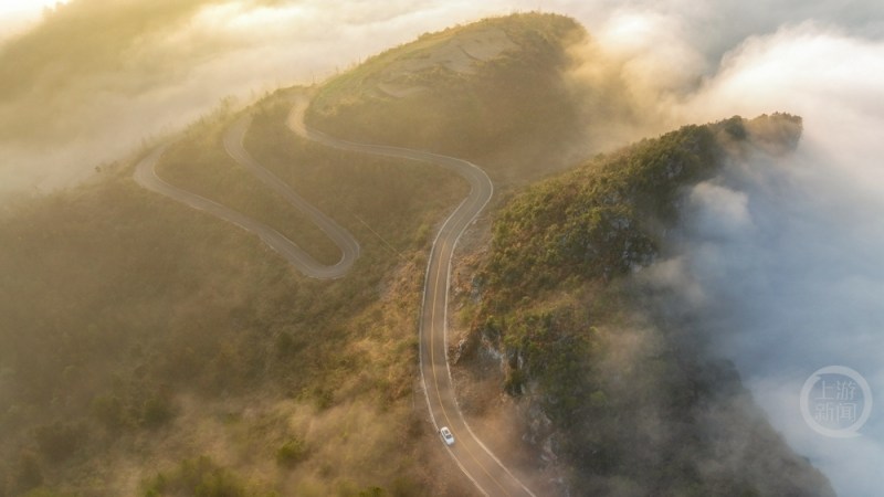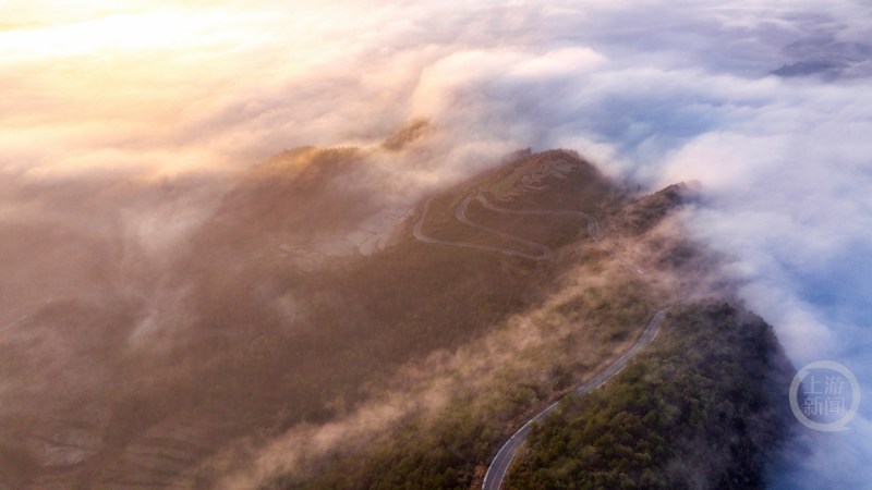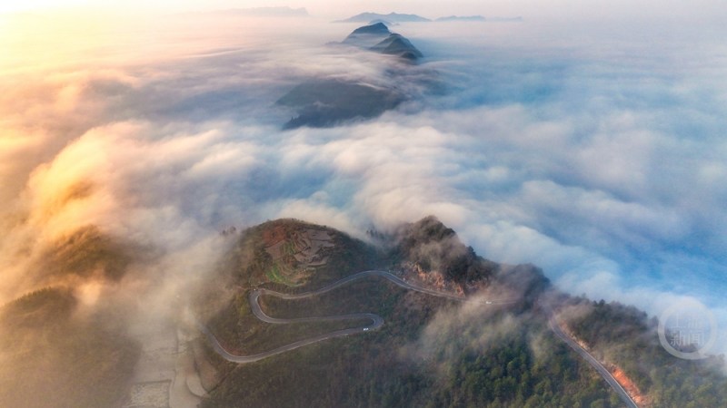 重庆酉阳:“银龙”穿云海 天路沐晨光