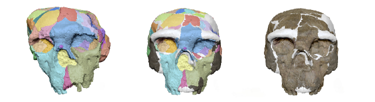 研究团队采用了高精度CT扫描与结构光表面扫描技术,清晰识别出“郧县人2号”化石中的裂隙、矿物填充和未变形的骨片,随后通过创新的数字重建方法,以虚拟方式完成了头骨的精细拼接。重建后的“郧县人2号”头骨呈现出原始与进步特征交融的形态:低平的额骨和突出的吻部类似更古老的直立人或海德堡人;而扁平低矮的颧骨、更宽的后脑颅以及较大的脑容量,则与龙人以及大荔、金牛山、华龙洞、许家窑等地出土的中更新世人类化石相似。同时研究发现,这件百万年前的头骨脑容量竟超过1100毫升。