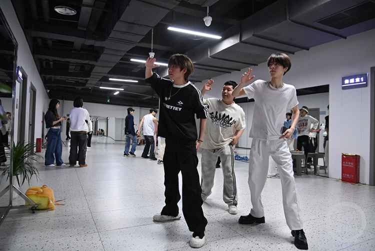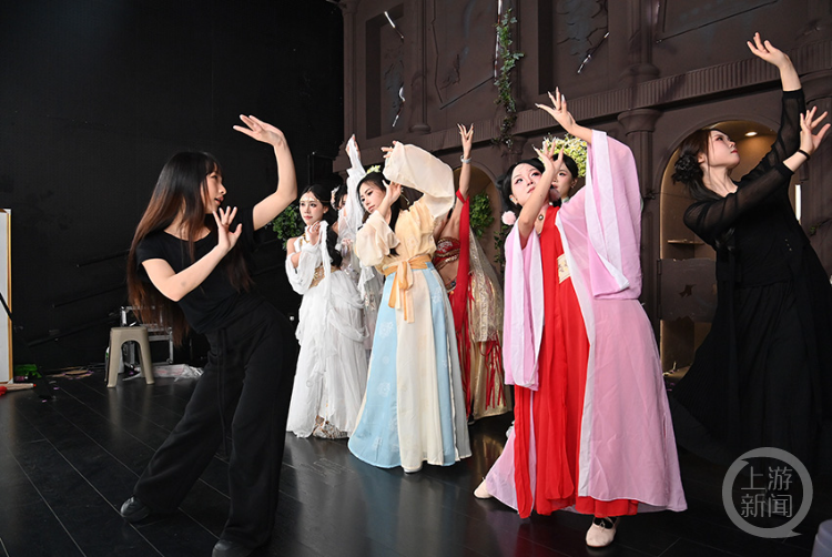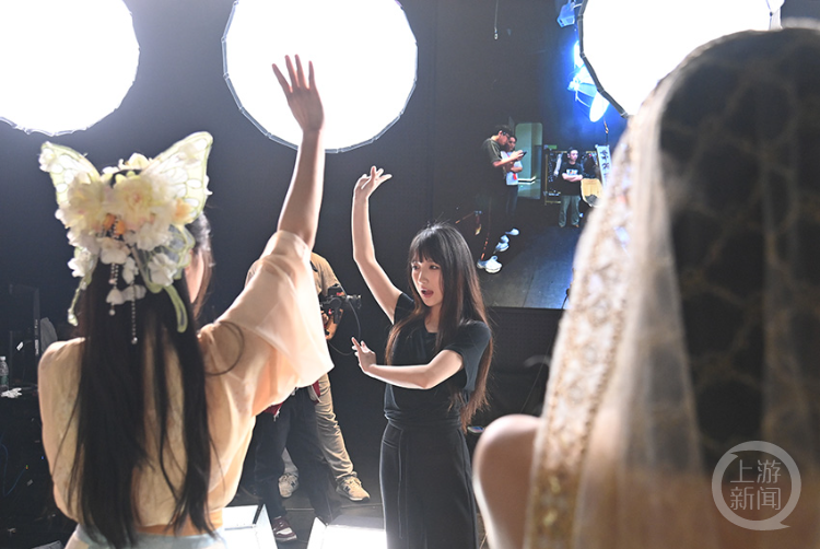 网络主播们在舞蹈教师的指导下排练舞蹈。