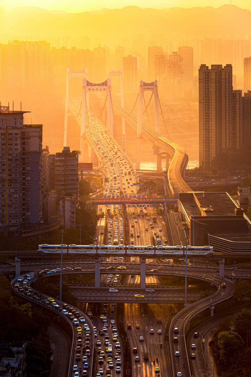 2025年8月2日,《纵横交错》。立体的交通在山水间编织成网,这是重庆写给大地的一首基建之诗,繁忙而魔幻。
