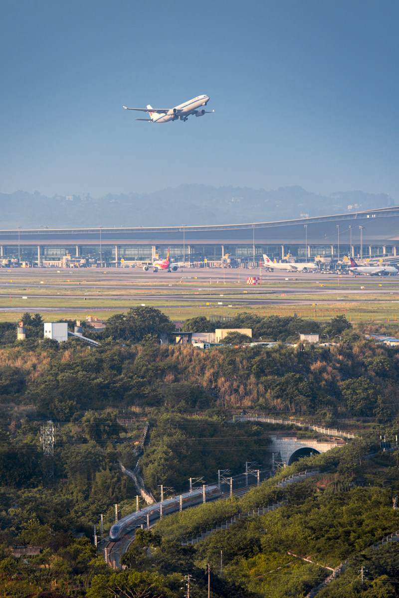 2025年5月10日,《空铁同框》。铁轨如矢,银翼如梭,在同一片天空下交织出时间的双翼,让抵达成为一种多声部的飞行。