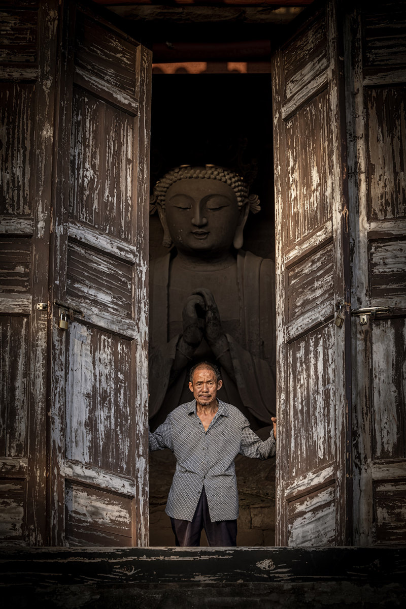 《石刻守护人》。2025年7月5日,摄于四川省安岳县