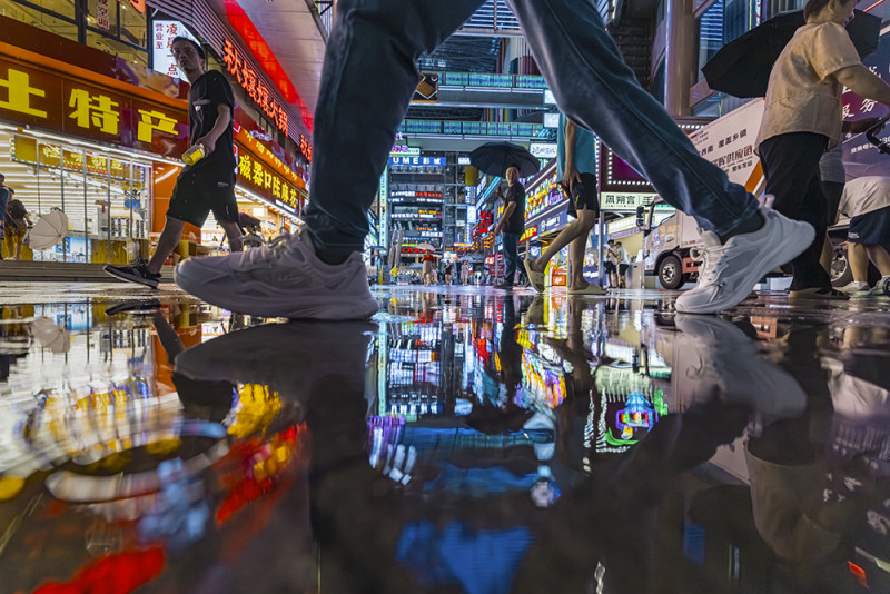 《五彩雨夜》。2025年3月18日,摄于重庆市渝中区