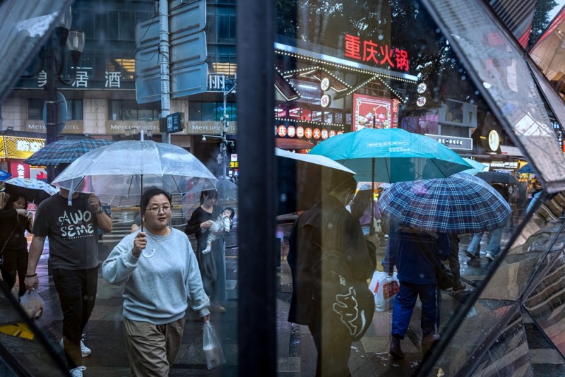《雨中即景》。2025年10月19日,摄于重庆市渝中区