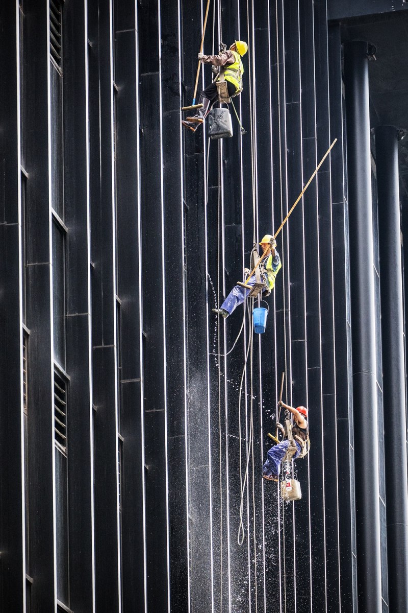 《高楼“蜘蛛人”》。2025年6月14日,摄于重庆市两江新区钻石广场