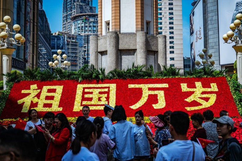 《解放碑下迎国庆》。2025年10月1日,摄于重庆市渝中区解放碑