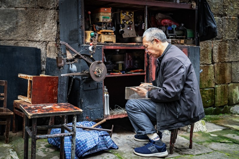 《地摊工匠的坚守》。2025年11月13日,摄于重庆磁器口
