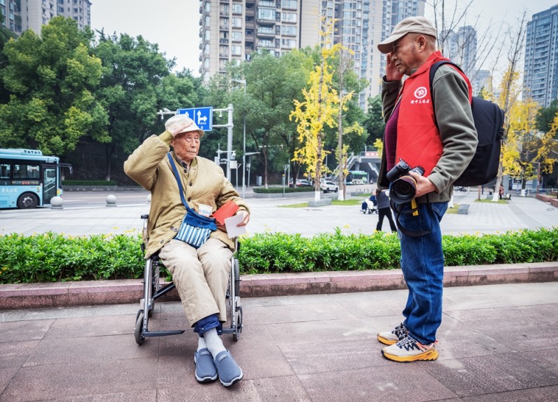 《致敬老兵》。2025年12月11日,摄于重庆红岩村