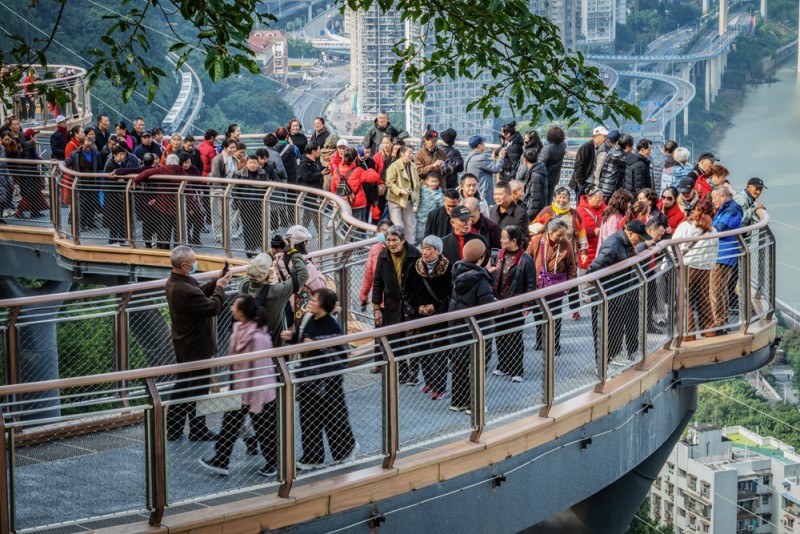《鹅岭栈桥人潮涌》。2025年11月19日,摄于重庆半山崖线鹅岭栈桥
