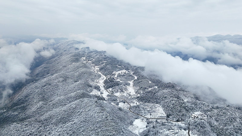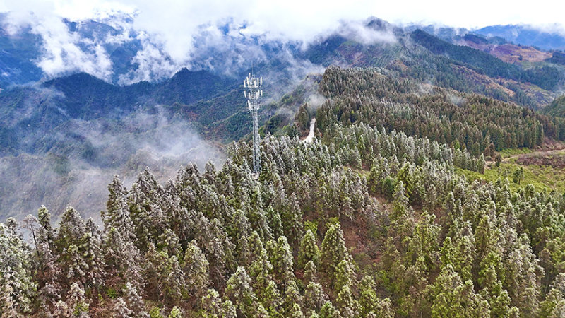 2025年3月6日,重庆市酉阳土家族苗族自治县多个高海拔地区迎来春雪美景,在海拔1000多米的木叶乡,松林披上白纱,在天地间宛如一幅水墨画卷。