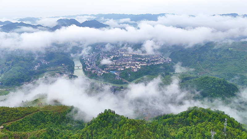 2025年4月27日,在重庆市酉阳土家族苗族自治县酉水河大溪镇段,蜿蜒的酉水河穿境而过,被云雾轻柔环绕,呈现出如梦似幻的景致。