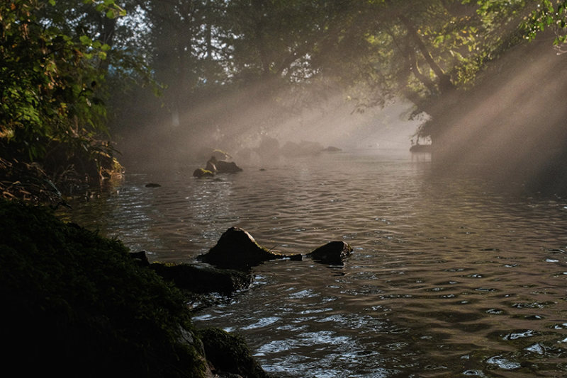 2025年7月15日,重庆市酉阳土家族苗族自治县木叶乡木叶河,阳光穿透枝叶,洒下缕缕金辉,在河面漾开细碎的光斑。