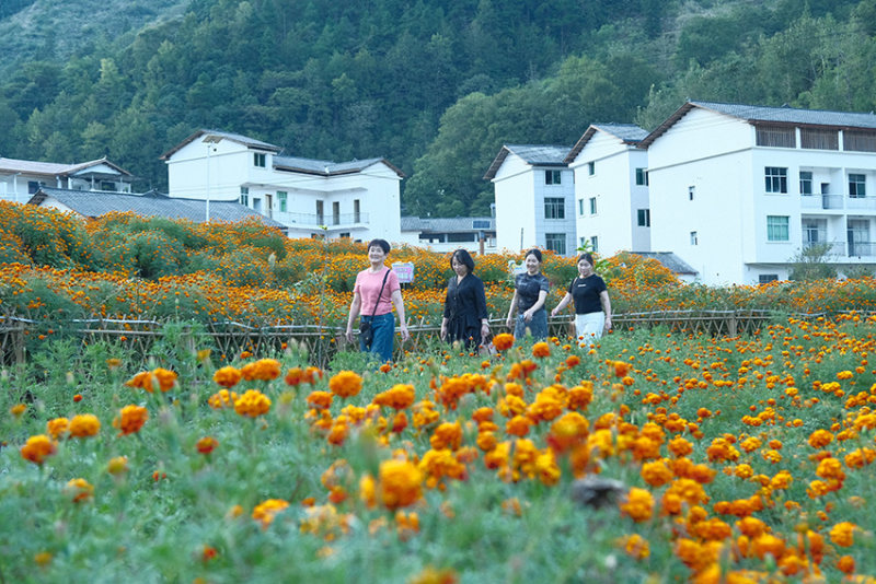 2025年10月12日,在重庆市酉阳土家族苗族自治县铜鼓镇兴隆村,游客们漫步于花境之中。