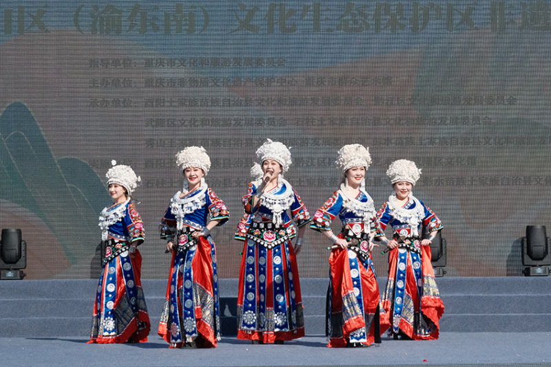 2025年11月26日上午,“山水同源 武陵同梦”2025武陵山区(渝东南)文化生态保护区非遗展演活动在重庆市酉阳土家族苗族自治县酉水河镇上演,图为女声组合唱《赶秋》。