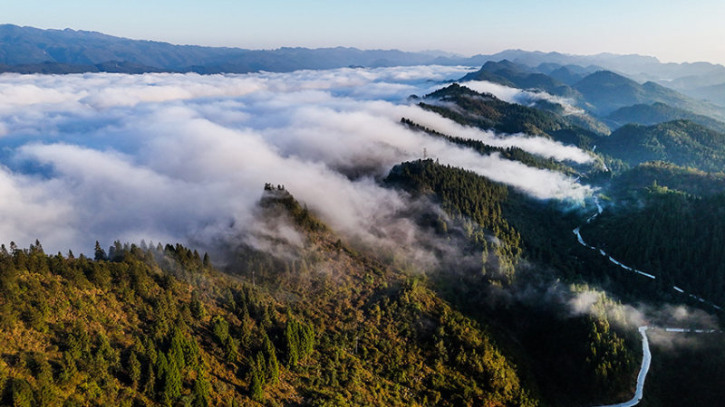 2025年11月27日,重庆市酉阳土家族苗族自治县木叶乡出现绝美云海景观。