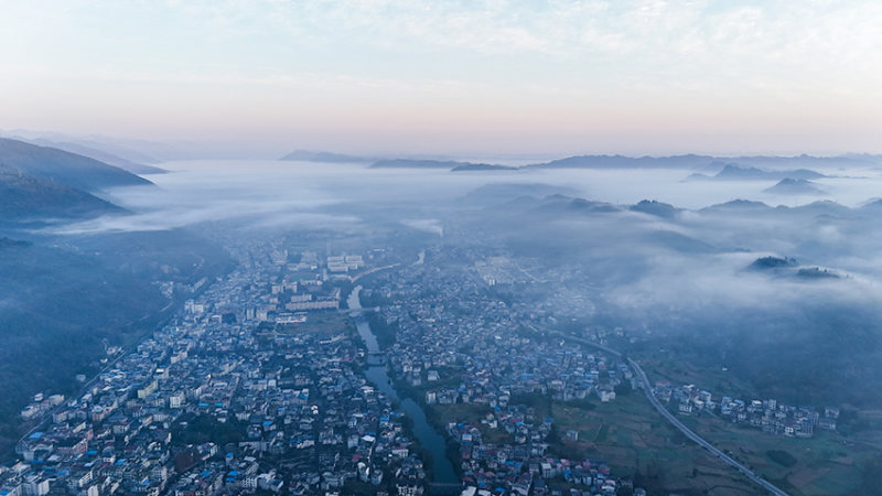2025年11月29日,重庆市酉阳土家族苗族自治县龙潭古镇迎来了一年中云雾最盛的时刻,错落的民居与金黄的秋林在云海间勾勒出一幅“天上人间”的画卷。