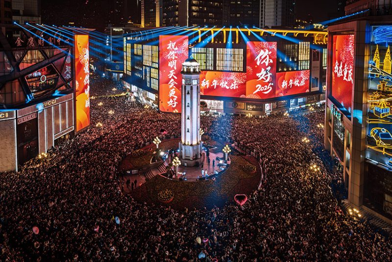 《新年之约》。2025年1月1日,重庆市渝中区解放碑,2025元旦,万千目光聚向同一束光,在祝福标语与欢呼声里,整座城在解放碑下相拥跨年。
