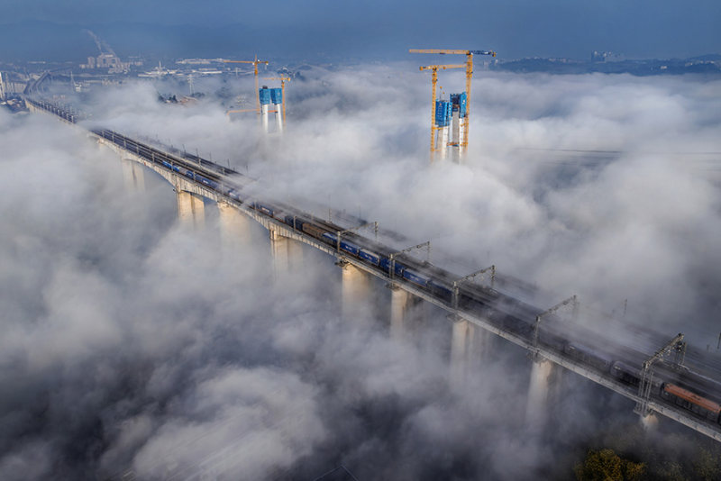 《穿云破雾的交通新动脉》。2025年1月12日,摄于重庆市两江新区。