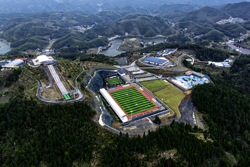 《云巅绿茵》。2025年3月30日,湖南省怀化市岩口镇向家村,高山之巅,绿茵球场如天赐碧玉,镶嵌在群山怀抱中。