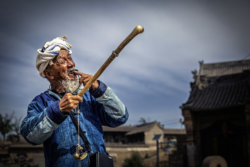 《黄土谣》。2025年5月15日,山西省碛口镇李家山村,蓝衣白巾,一曲信天游穿云裂石,皱纹里的笑,是黄土塬最深的年轮。