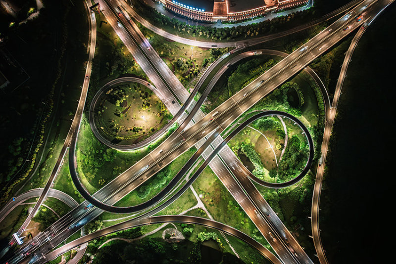 《天堡南立交夜色美》。2025年9月28日,重庆市两江新区现代大道天堡南立交,光轨交错的立交桥,是夜色中城市奏响的竖琴,每一次流动都是光的和弦。