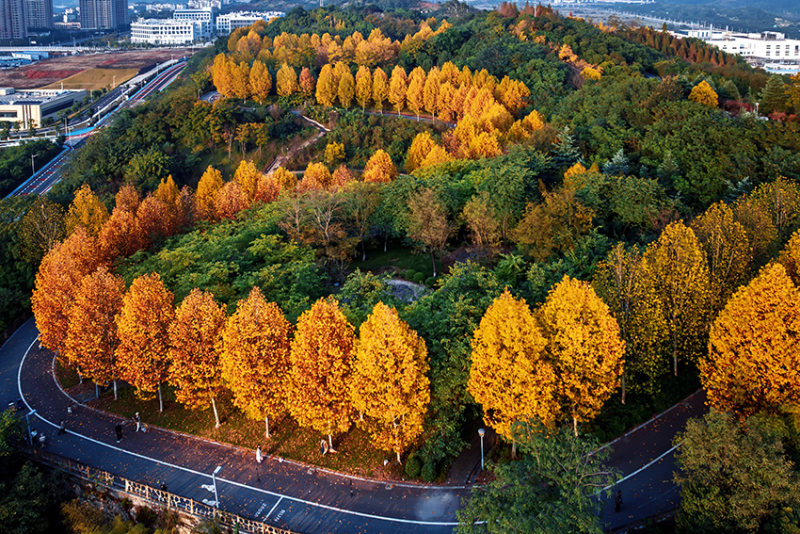《思缘叠彩》。2025年11月26日,重庆市两江新区水土园区思缘公园,秋意赖在冬的山坡不走,将层层色彩叠成绒毯,覆住季节交替时那声轻轻的叹息。