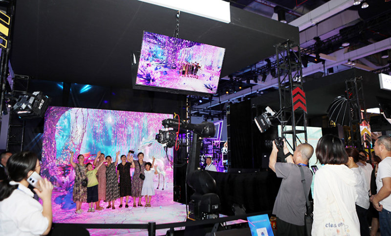 2025年7月5日,重庆永川国际会展中心,市民在“渝见·光影”电影科技成果展览上,欣赏、体验AI技术、虚拟拍摄、动作捕捉、数字人、智能全流程等沉浸式光影盛宴。