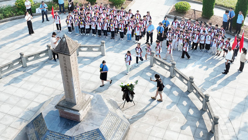 2025年9月2日,重庆市永川区来苏镇,检察官和同学们在抗战纪念碑前开展主题活动,将纪念抗战胜利80周年元素融入“开学第一课”。