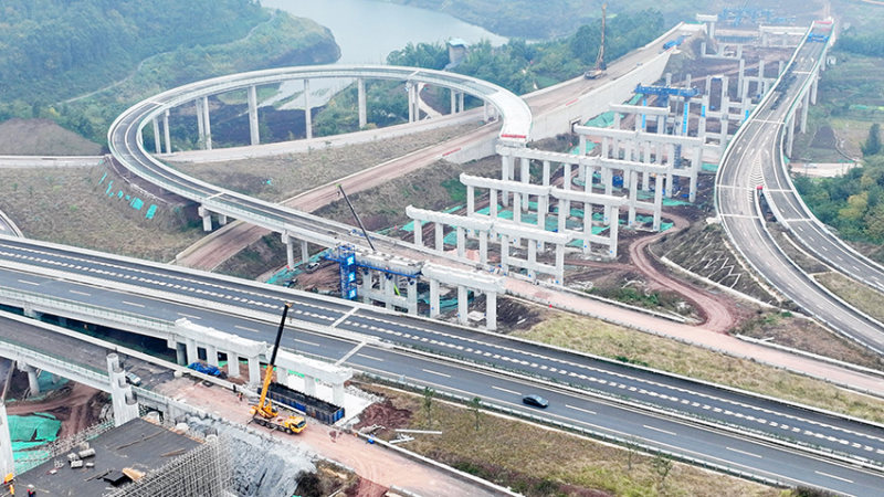 2025年12月8日,位于重庆市永川区大安街道的成渝高速公路(重庆段)改扩建项目七一水库大桥施工现场,施工车辆穿梭、吊车挥臂、机器轰鸣,呈现出热火朝天的景象。