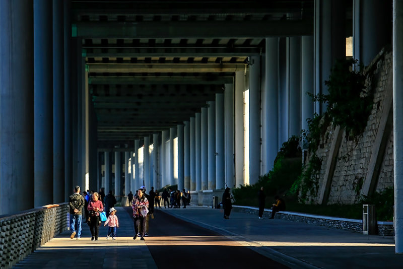 《桥影闲步》2025年3月24日,摄于重庆市沙坪坝区滨江路