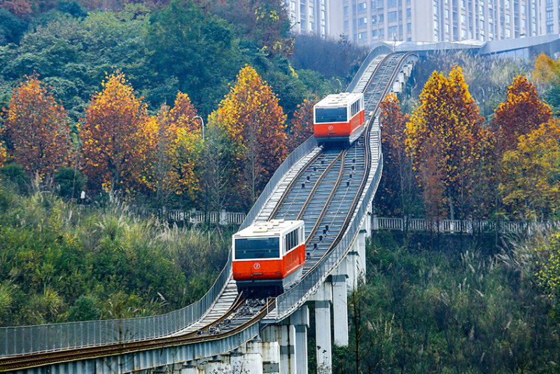 《缆车穿梭彩林间》2025年12月8日,摄于重庆两江新区