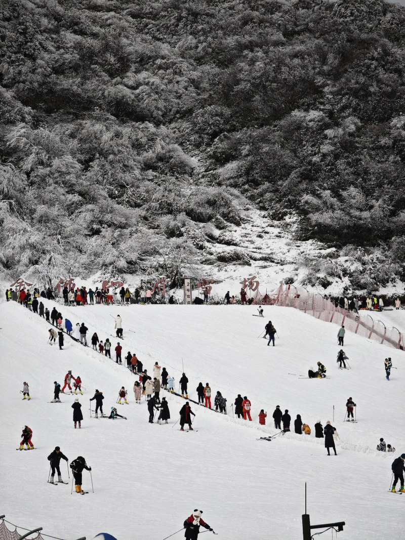 2025年2月8日,重庆市南川区金佛山滑雪场,银装素裹的坡道上,游客们尽情体验速度与激情。