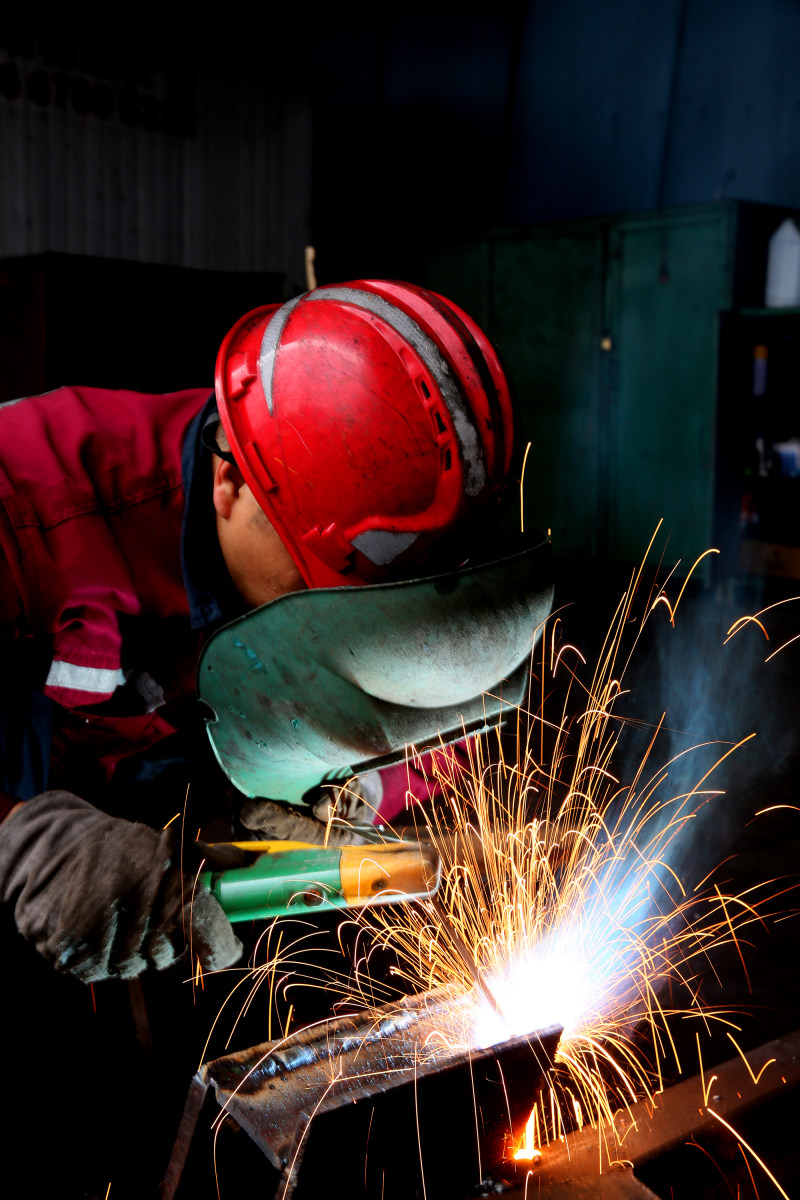 2025年4月27日,重庆市珞璜港保修组职工正在进行工件焊接作业。