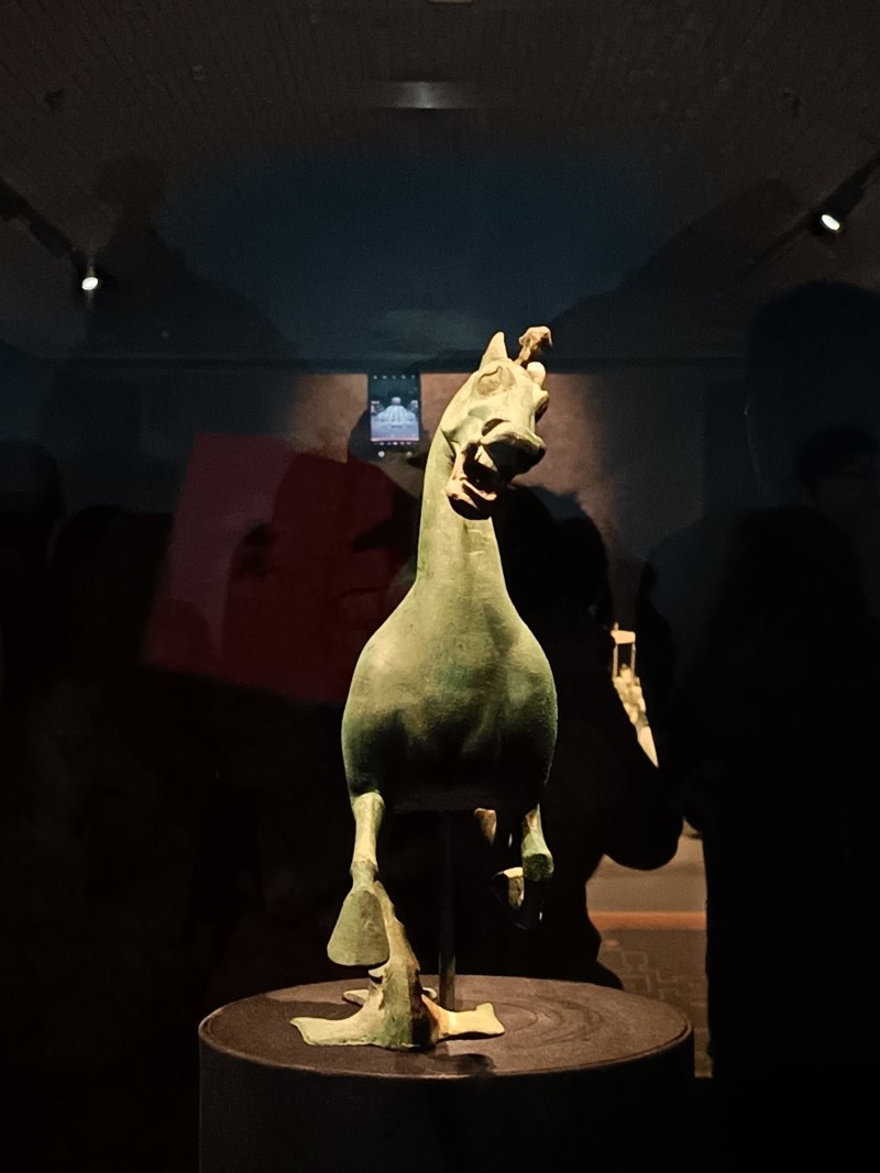 2025年7月11日,甘肃省博物馆所藏的唐代铜奔马(又称“马踏飞燕”),其正面视角表情夸张生动,常被游客和网友形容为“搞笑又奇特”。
