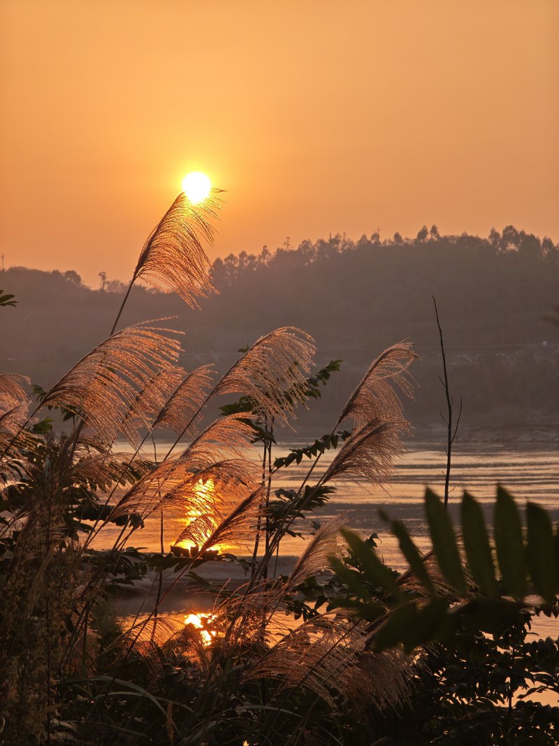 2025年11月26日,重庆市江津区珞璜,落日将江水浸染成一片绚烂的橘子海,暖光流淌,远山如黛,勾勒出黄昏时分静谧而热烈的江岸画卷。