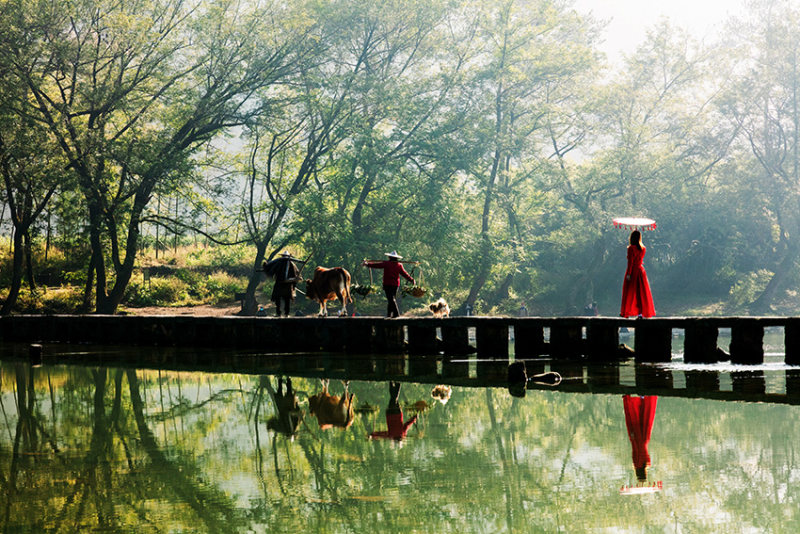 《晨耕过桥》2025年11月,摄于浙江省丽水市缙云仙都。