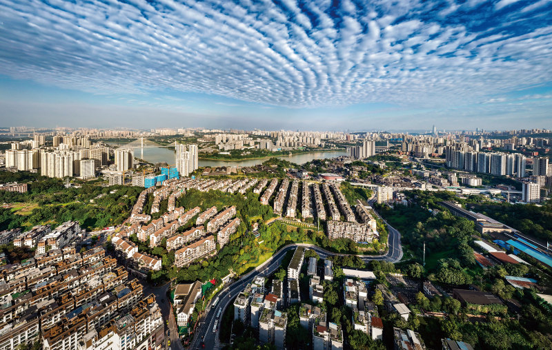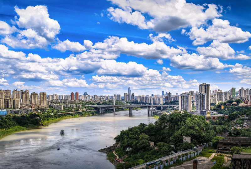 《蓝天白云下的家园》2025年7月24日,摄于重庆市沙坪坝区石井坡。