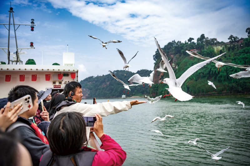 《群鸥迎客》2025年11月9日,摄于四川省乐山市岷江风景区。