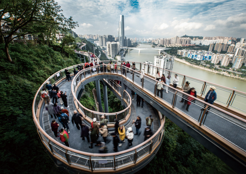 《峨岭半山崖壁栈道凌空飞悬》2025年11月19日,摄于重庆市渝中区。