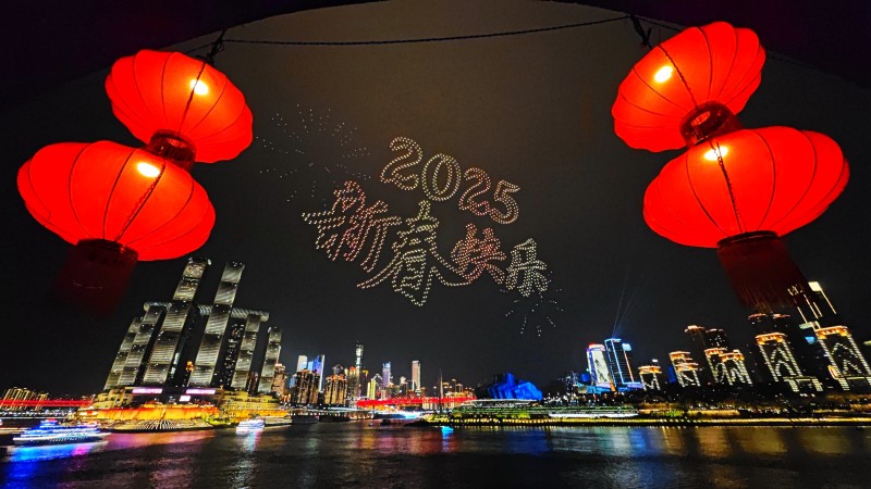 2025年2月16日,重庆市南岸区,无人机表演。
