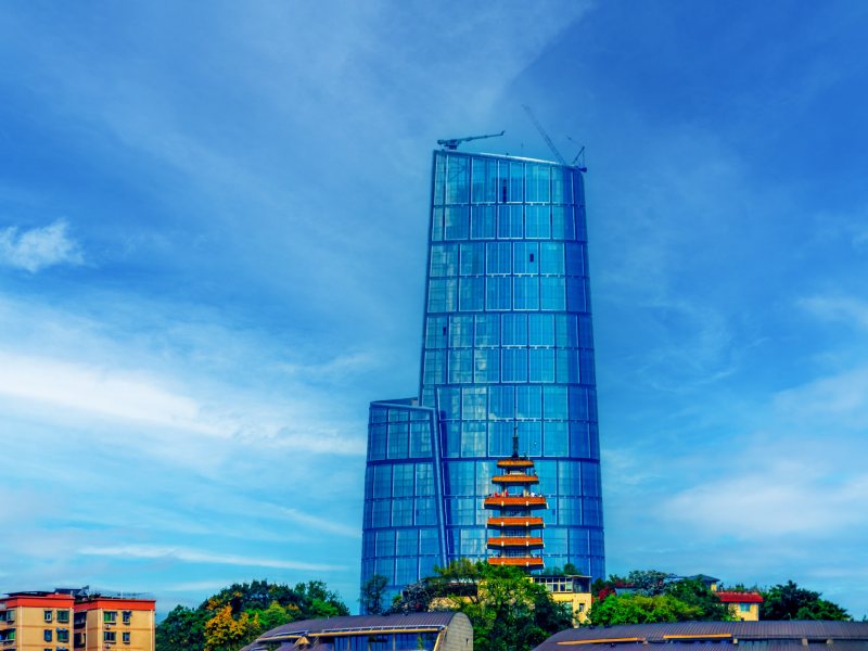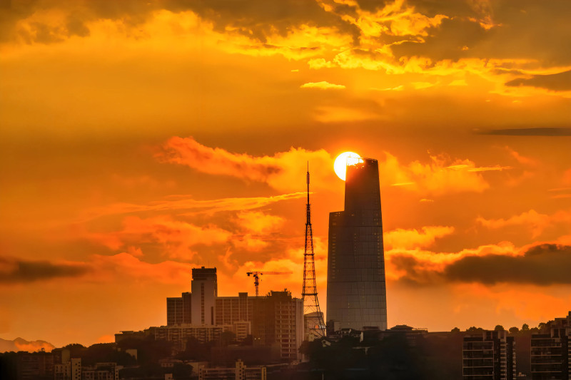 2025年7月8日,重庆市渝中区,陆海国际中心与电视塔同框。