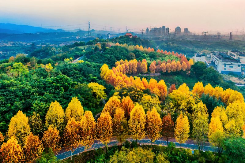 2025年12月1日,重庆两江新区,思源郊野公园的梧桐大道。